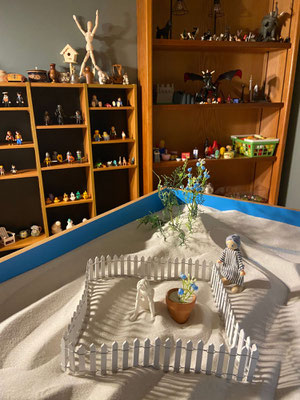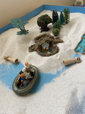 Something Bonnie loves about working in Sand Tray, she says, is that a client processes even without words. The Sand Tray offers a tactile experience that feels safe and may invite creative thinking and problem solving. The use of symbols may help reduce the stress of traumatic experiences and offers support in emotional regulation.